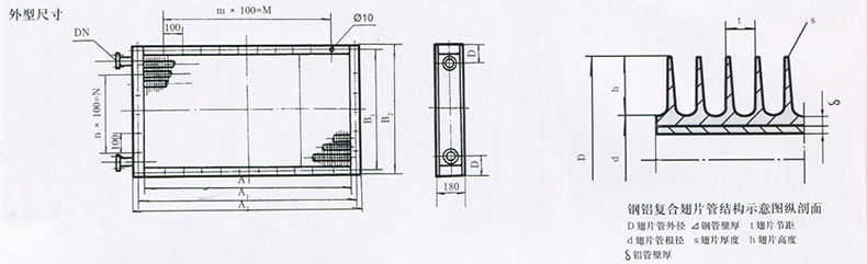 | 型號(hào) | 迎風(fēng)面積m2 | 散熱面積m2 | 凈通風(fēng)截面積m2 | 表面管數(shù) | 排數(shù) | 連接管DN(in) | 尺寸(mm) | ||||||||||
